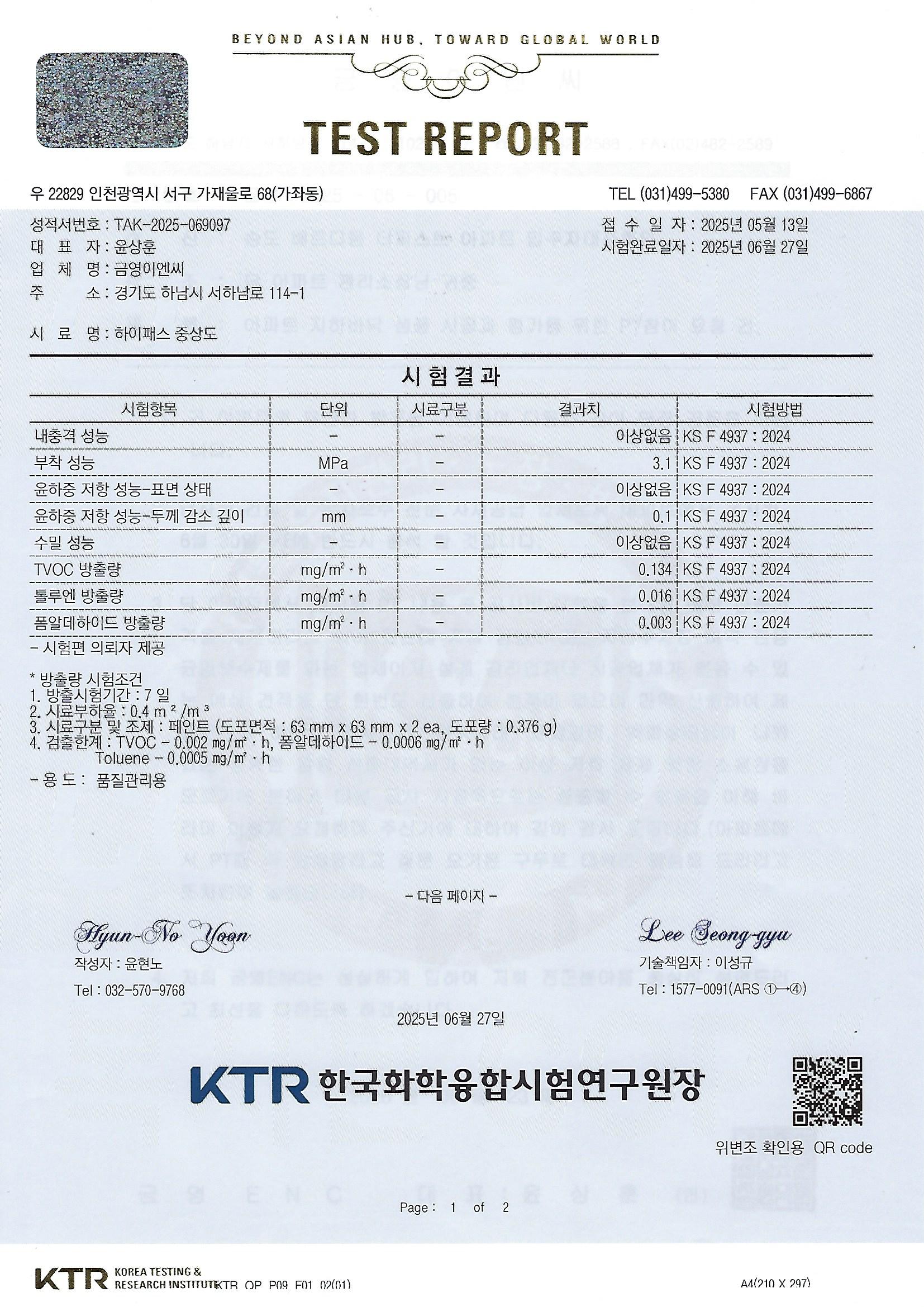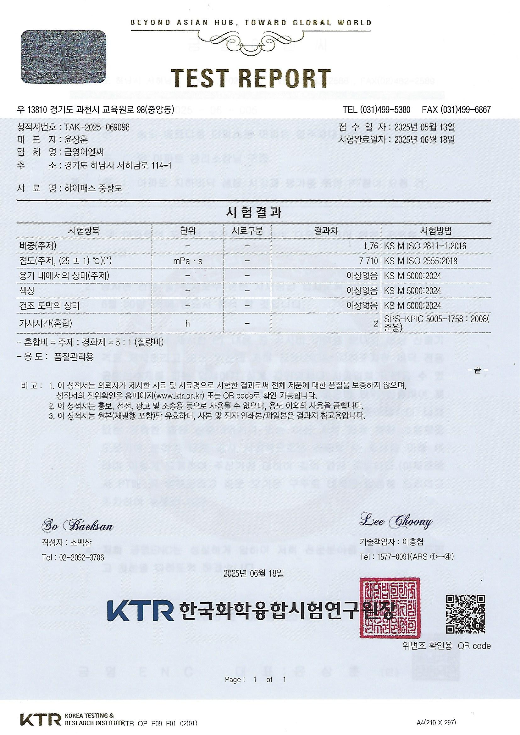 또한, 내약품성, 내마모성, 내충격성 및 접착력, 기계적 강도 등의 물성이 양호합니다.