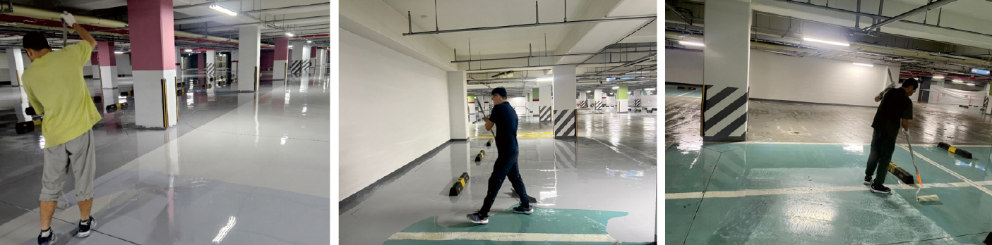 자체평활성 (Selflevelling)이 우수한 무용제형 중상도 겸용 에폭시 도료로서, 내구성 및 외관이 우수한 바닥재입니다.
